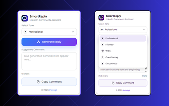 SmartReply, LinkedIn gönderileri için doğal ve insan tarzında yorumlar oluşturmanıza yardımcı olan bir Chrome uzantısıdır. Kullanıcılar, gönderiyi görüntüledikten sonra bir ton seçerek 1-3 cümlelik yorum önerileri alabilirler. Uzantı, profesyonel, samimi, esprili, sorgulayıcı ve empatik ton seçenekleri sunarak, her gönderiye uygun bir yorum oluşturma imkanı tanır. Ayrıca, kullanıcılar kendi OpenAI API anahtarlarını kullanarak uygulamanın kullanımını ve faturalandırmasını kontrol edebilirler.